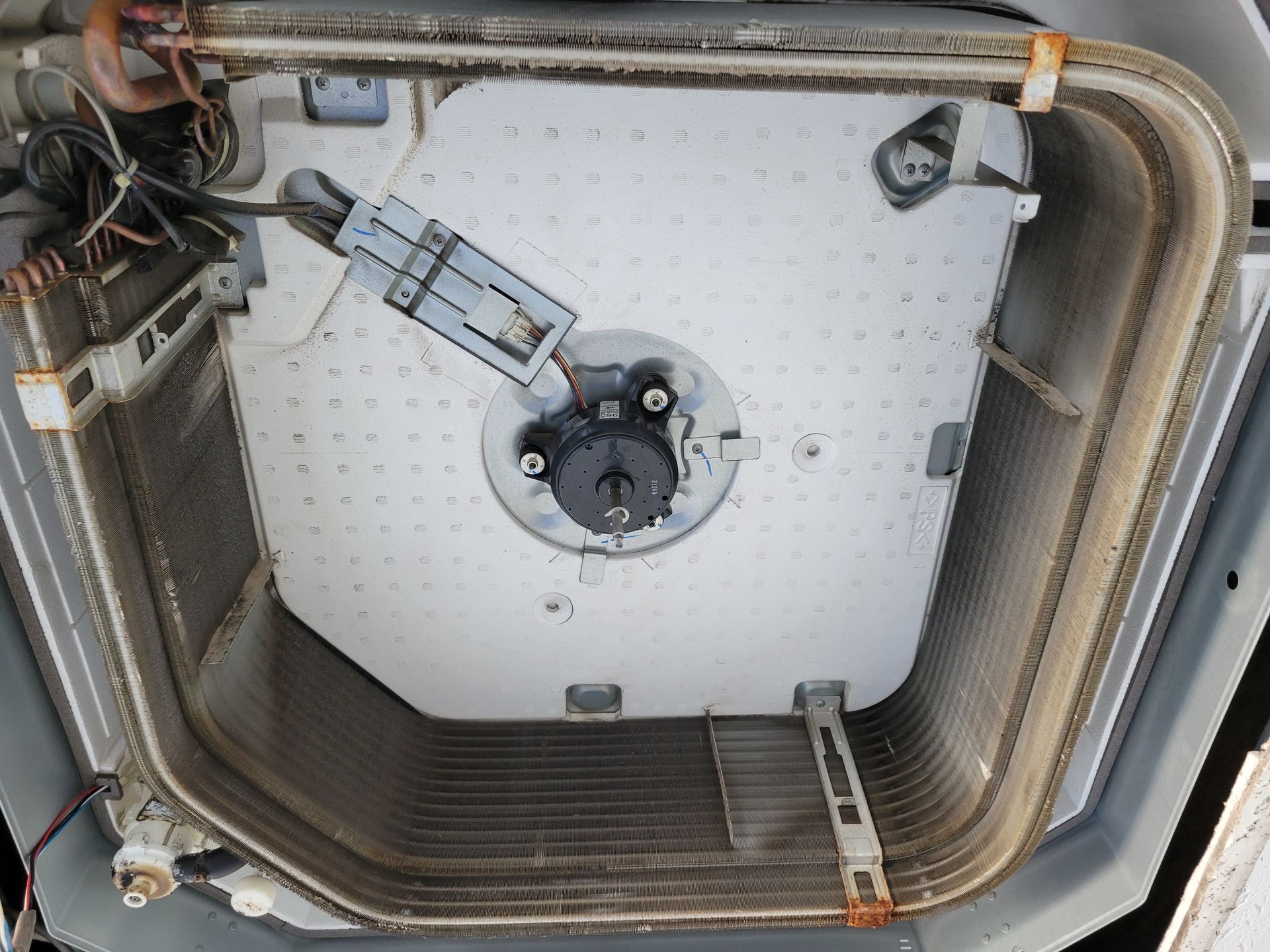 富士通ノクリア(AS-Z63V2)のお掃除機能付きエアコンのクリーニングを行いました。熱交換器にはホコリがびっしり付いており、送風ファンにもホコリやカビが…